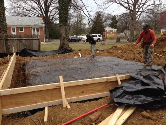 Jose compacted the soil for the garage so that we only needed 4” of gravel rather than a foot. It was a lot of extra work for him but it looks good. We will use all the left over gravel for the pervious driveway. However, the footings had to be 4' deep and not 2' due to soils conditions. Those extra two feet requires us to double the amount of concrete for the garage. We will actually use more concrete on the garage foundation (30 CUYDS) than the house (19 CU YDS)!