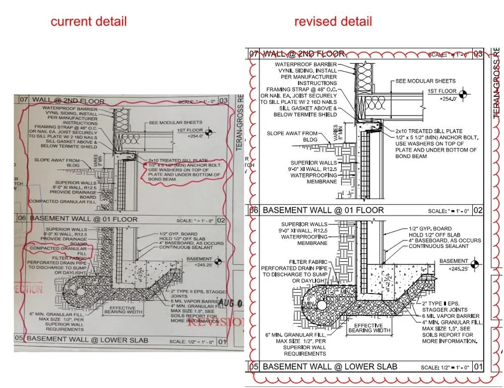 Today my mind was on the backfill detail. For some reason I originally had dirt as the backfill and on my last revision I decided to add gravel. I think I read to many Green Building Advisor articles and as we know an Architect's worse enemy is time. We always tinker with the design! Regardless it was my fault that there was gravel as backfill. There is always a solution.