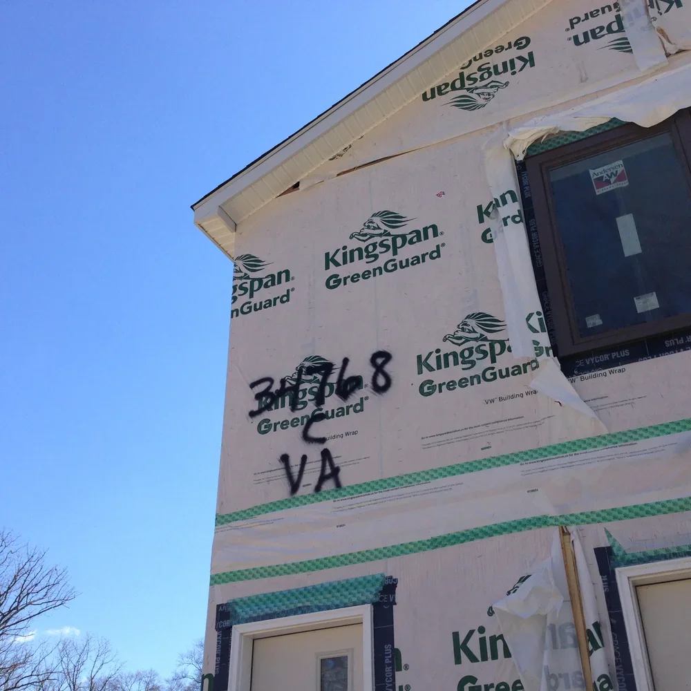 Pedro had to attend his best friend's birthday party so I was the one that took him. It was Lego themed and even had a green Lego carrot birthday cake. Of course I had two slices. I did manage to stop by the site in the morning and saw Carbide Construction with their crew out there wrapping up the house. That involves all the waterproofing (white paper on the walls) being neatly stapled to the plywood. It also included all the eaves and fascia being installed. the majority of those pieces were just lying inside the living room and had to be installed once the house was installed. There were four guys out there and they knocked it out in a day. Once we finish backfilling the house will be ready to have the siding installed. I guess we also have to wait until the siding is delivered.