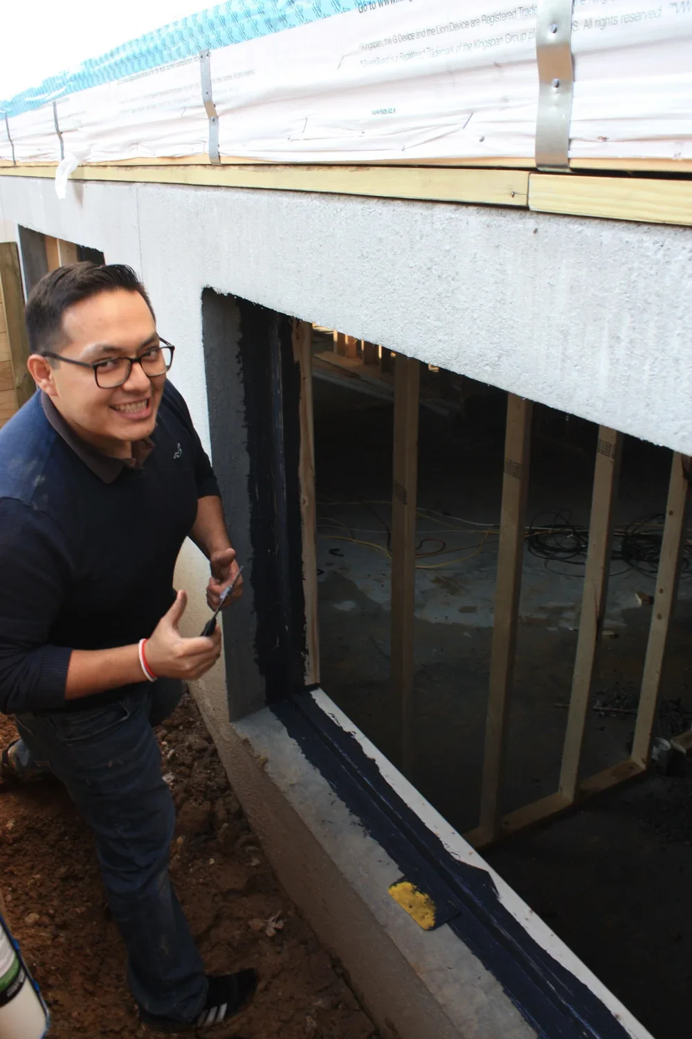 -Juan Sebastian installed the remaining liquid fluid applied membrane on the window frames. This technique was easy but it was harder and more time consuming than I thought. Afterwards he wrestled with one of the IKEA cabinets.